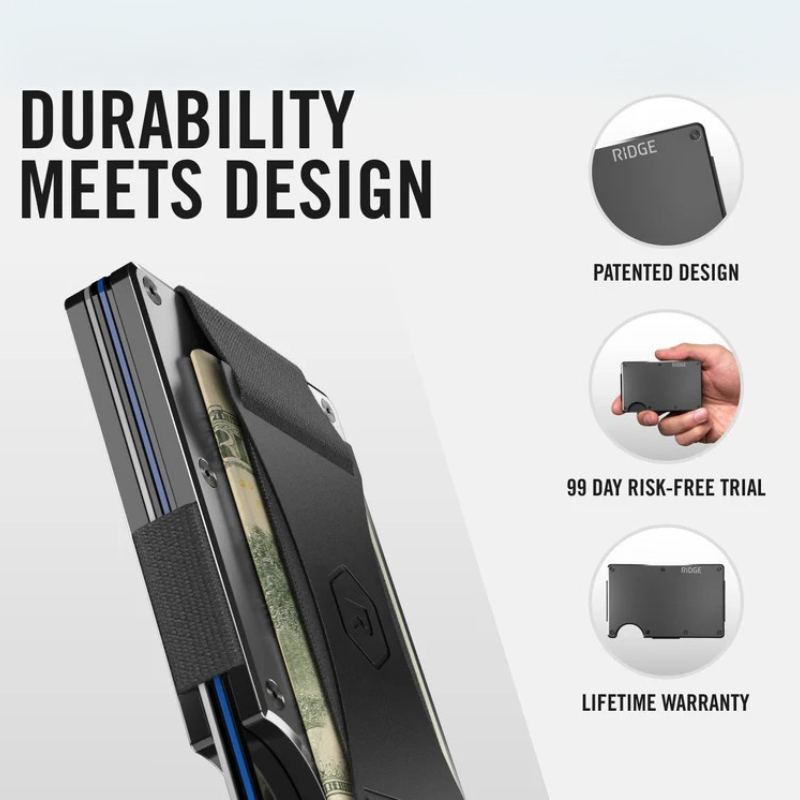 Ridge Wallets are minimalist, tactical EDC wallets built from premium metals and composites with RFID-blocking protection and modular construction.