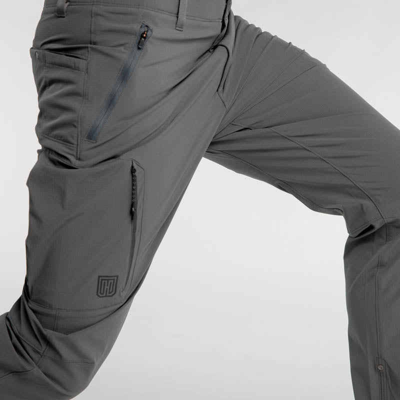 The MTHD Wetland amphibious pant is a versatile go-to pair of pants suitable for a variety of outdoor pursuits from trekking and bouldering to more leisurely activities like boating and happy hour. Featuring a lightweight, quick-dry 20D nylon micro ripstop fabrication with 4-way stretch performance. Designed to have a tailored fit, with a stretch waistband for comfort, and belt loops for necessities. Cut to a tapered leg with articulated knees for enhanced movement, plus a roll-up snap adjustment for a shorter leg length option as needed for creek-crossings. Discover lots of secure pocket options for EDC essentials. PFC-free DWR (durable water repellent) finish will help bead off light precipitation and splashes.