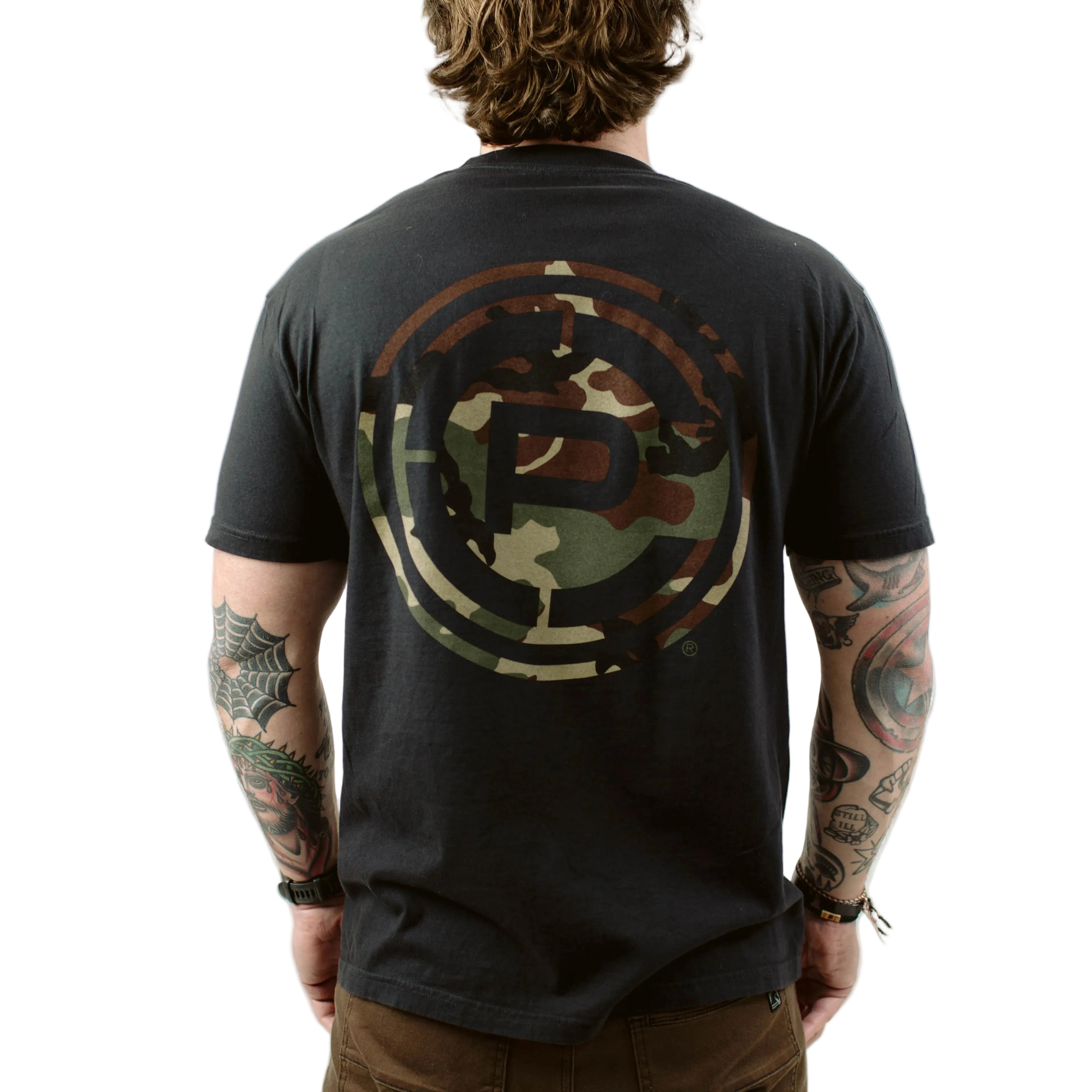 The TD x Crye Woodland Tee takes the same design energy from our crewneck and brings it to a heavyweight cotton shirt made for daily rotation. The back features a large Crye Precision circle logo filled with classic M81 Woodland, the pattern that shaped a generation of gear. The front keeps it clean with a subtle left chest hit and a small sleeve graphic for the ones who know.