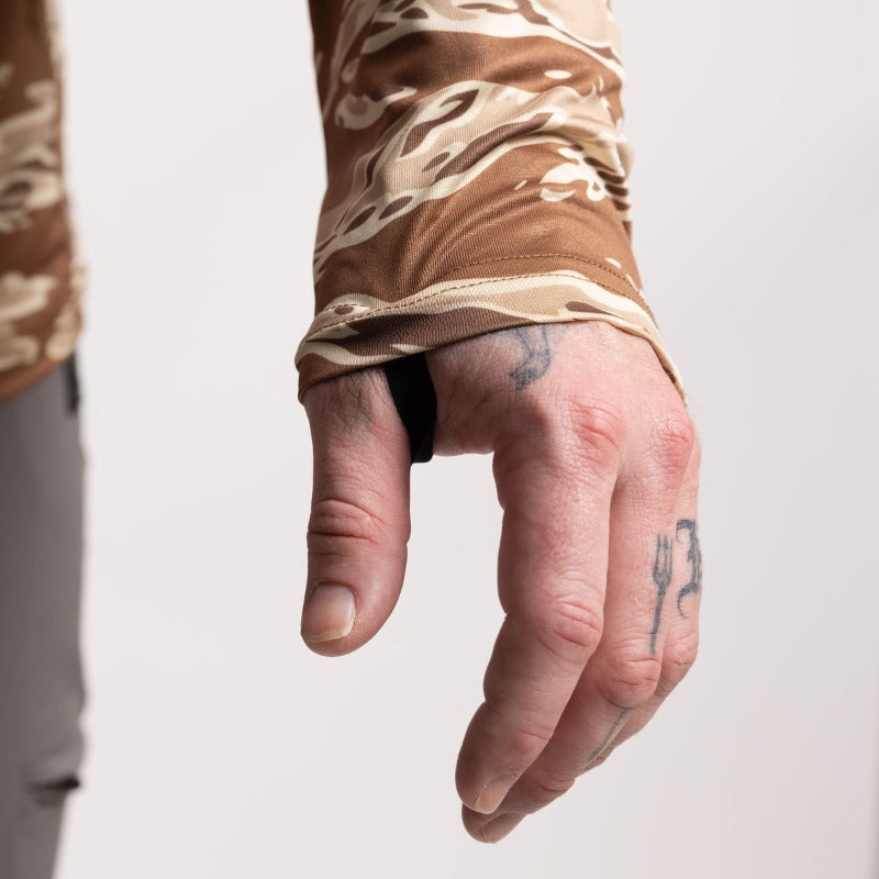 This isn’t just a beach hoodie with camo slapped on. The TD Sun Shirt is a tactical warm-weather layer made for movement, UV defense, and hard use under harsh skies. Whether you’re rucking, fishing, training, or posted at the range, this hoodie earns its place in your kit. It’s sunblock you can wear and it doesn’t sweat off.
