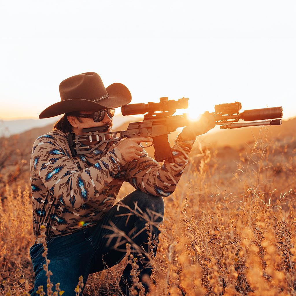 The TD x Black Canyon Systems Southwest Tan Hooded Sun Shirt is a lightweight performance hoodie designed for intense sun, hot weather, and constant movement. Created in collaboration with Black Canyon Systems, this technical sun layer combines western-inspired design with tactical performance fabric built for the range, the trail, and open terrain.